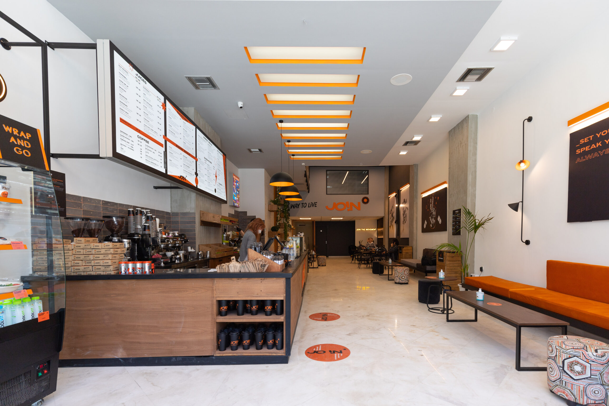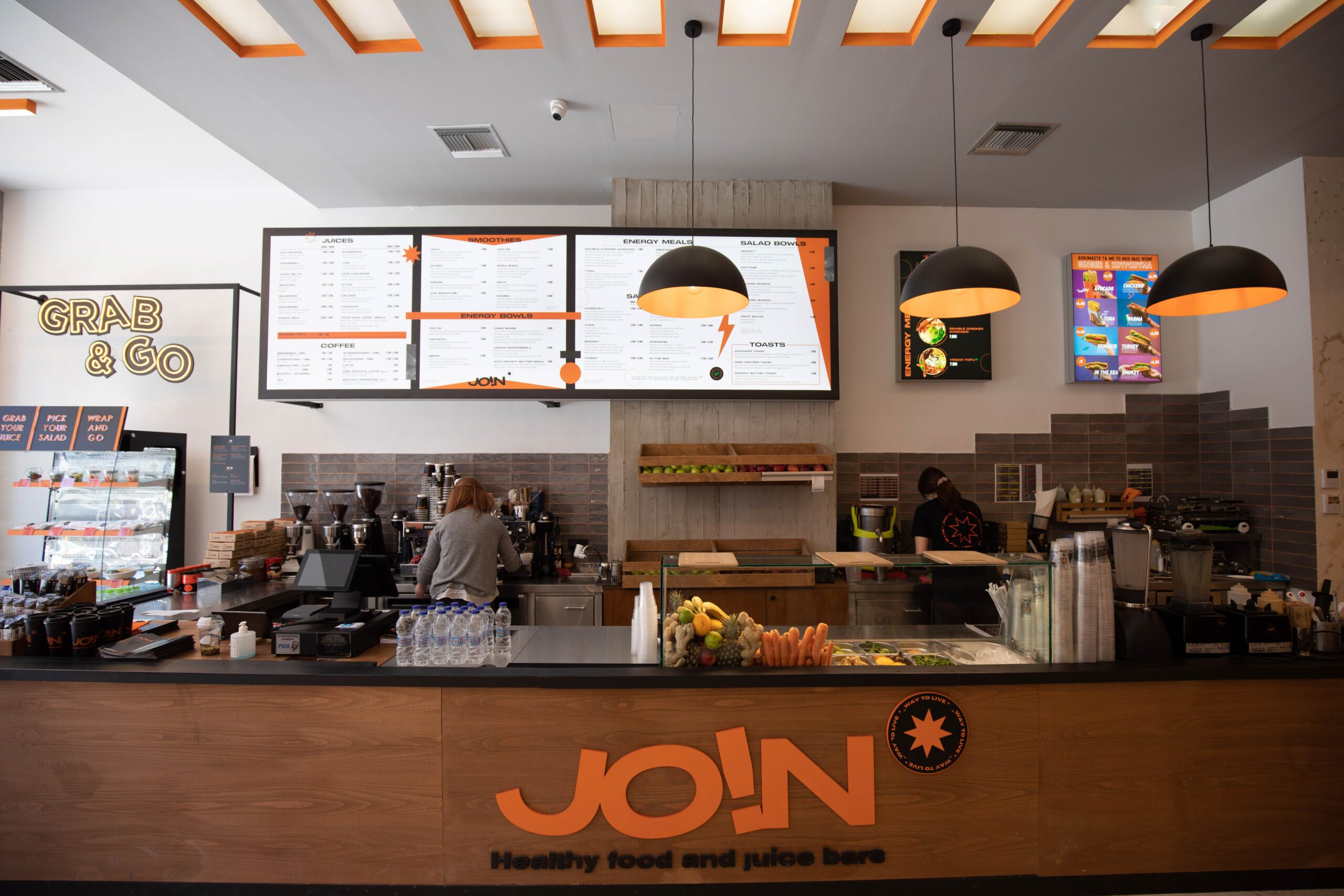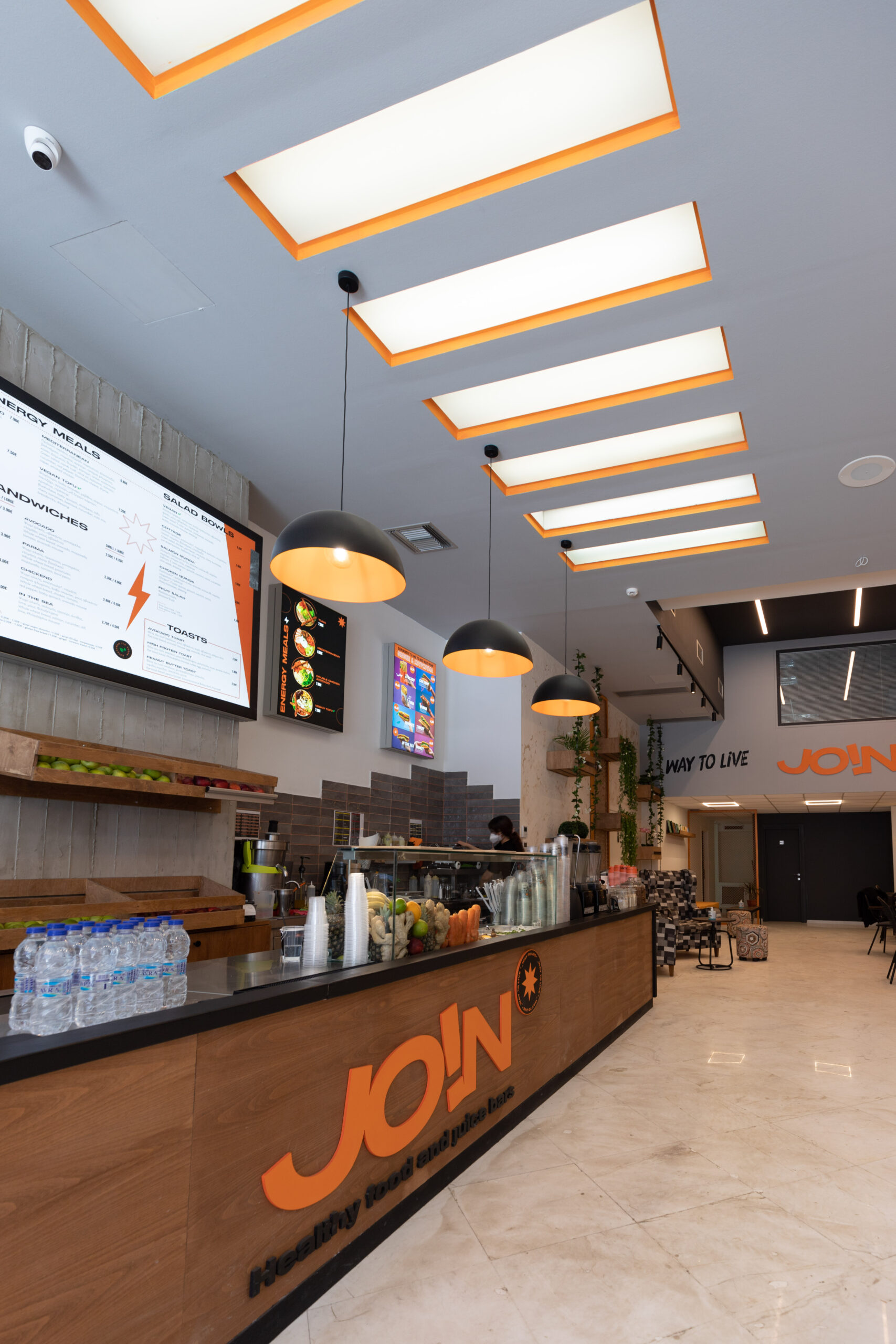 Τα JΟΙΝ healthy food and juice bars, έχουν πολυετή παρουσία σε διάφορα μητροπολιτικά κέντρα της Ελλάδος. Πρόκειται για μία σειρά καταστημάτων με φρέσκο design που ανανεώνεται διαρκώς αναζητώντας την εξέλιξη στην αγορά. Ξεκινώντας από το στάδιο του αρχιτεκτονικού σχεδιασμού όπου λαμβάνονται όλες οι αποφάσεις χωροθέτησης, βάσει εργονομίας και marketing και συνεχίζοντας με το εσωτερικό design ολοκληρώνουμε με κατασκευαστικά σχέδια που αφορούν την επίπλωση, τον φωτισμό, τον απαραίτητο εξοπλισμό και τις εγκαταστάσεις.